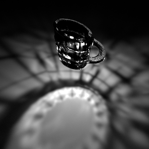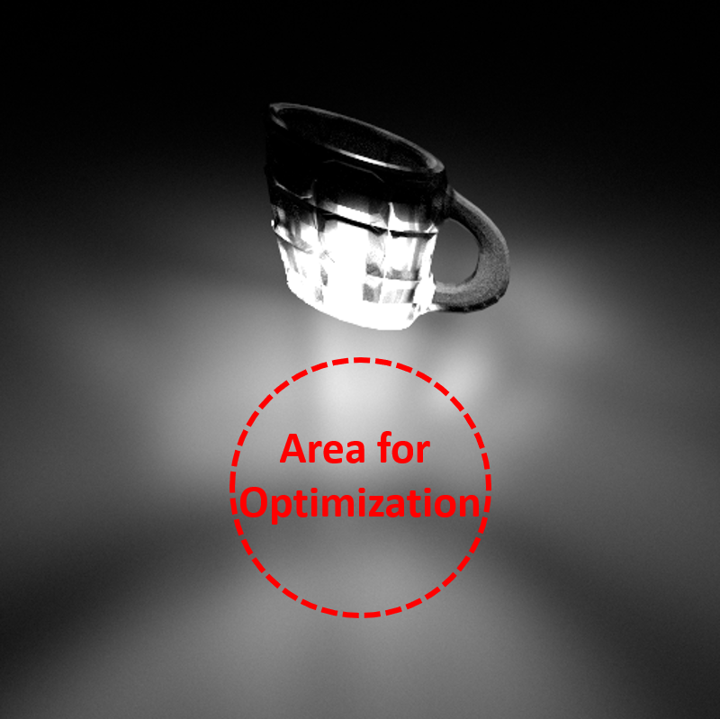 - We search for (i) the rotation of the glass mug (along a fixed axis), (ii) the vertical placement of the emitter, and (iii) the roughness of the glass mug.