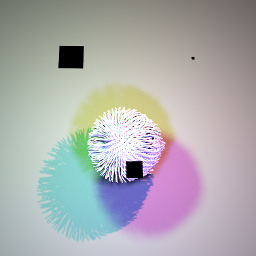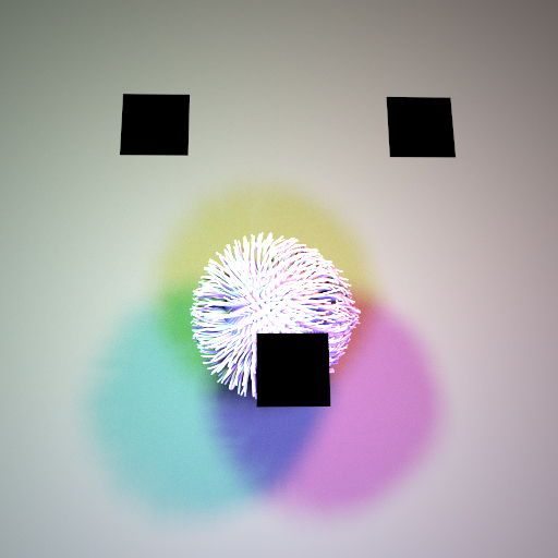 - This example contains a highly-detailed pufferball mesh with over one million faces illuminated by four area lights of red, green and blue colors, creating the colored shadows on the ground.